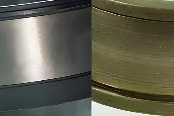 2、保证轴承装配质量。在修理装配前采用油浴均匀加热到70-95度,杜绝氧气乙炔加热,装配到位并检查轴承转动灵活。当轴承跑内圆要特别注意测量装配轴和NSK轴承套的配合尺寸。配合间隙磨损到0.02MM-0.12MM,0.13mm-0.25mm时,分别使用乐泰固持胶609和680进行粘接技术处理。超过0.25mm采用堆焊车削处理,达到装配要求,可将轴的过盈量从0.04-0.09加大到0.09-0.16mm,经现场使用再未发生跑内圆现象。