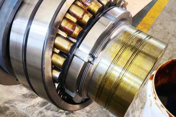 轴承的外圈跟轴承座配合比较松,内圈跟轴配合比较紧得时候,就可以用安装轴承时候使用的专业的压力机来把轴承先压在轴上,然后跟轴、轴承一起安装到轴承座里面,在施压安装的时候注意轴承内圈的面要冲上,然后垫一个软金属做成的套管,材质是铜的或者是软钢就可以了,在装配套管内径比轴颈直径还大,外径直径比内圈的档边还小的时候,就要避免施压在保持架上。